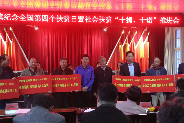 10月17日上午,安徽建工集团G206项目经理张魁出席舒茶镇纪念全国第四个扶贫日暨社会扶贫“十捐、十诺”推进会,公司荣获舒茶镇“十佳捐赠”单位称号。