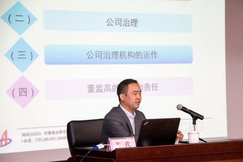 公司党总支委员、纪检委员、副总经理朱友良为新员工授课