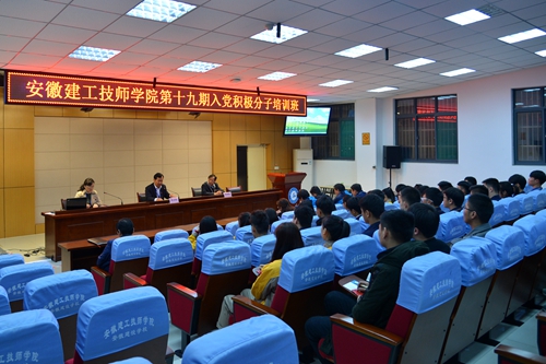 2017年11月6日,安徽建工技师学院业余党校第十九期入党积极分子培训班在学院录播室开班。院党委书记张卫东、纪委书记吴良照、纪检监察室主任杨华阳、离退休党支部书记、院女工委主任李继萍、院团委书记陈卓出席了开班典礼。党委工作部副主任沈晓云主持开班仪式。
