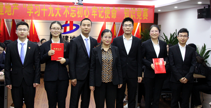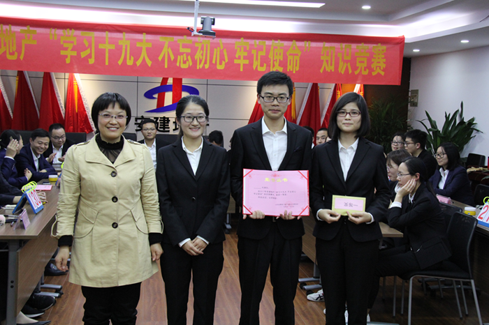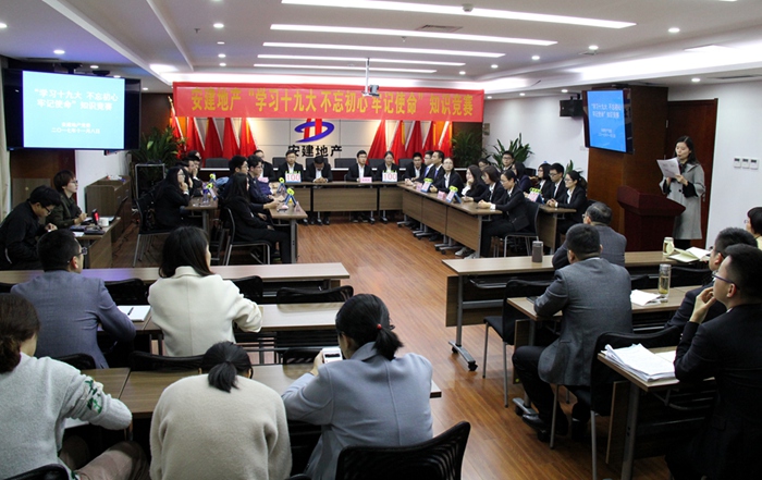 11月8日,安建地产在安建国际大厦21楼会议室组织开展“学习十九大 不忘初心 牢记使命”知识竞赛。安建地产所属各单位共10支队伍30名选手参加比赛。公司领导班子成员出席并为获胜队伍颁奖。