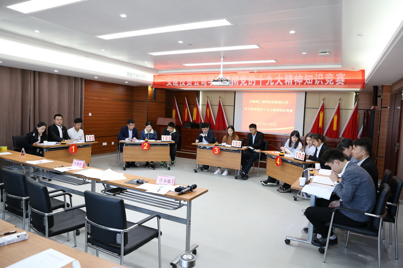 11月9日下午,安建投资公司学习贯彻党的十九大精神知识竞赛成功举办。来自公司机关及所属各项目公司15名队员组成的5支代表队汇聚一堂,展开激烈角逐。公司总经理、党总支副书记朱忠明,党总支书记、副总经理余志刚,党总支委员、纪检委员、副总经理朱友良出席比赛。
