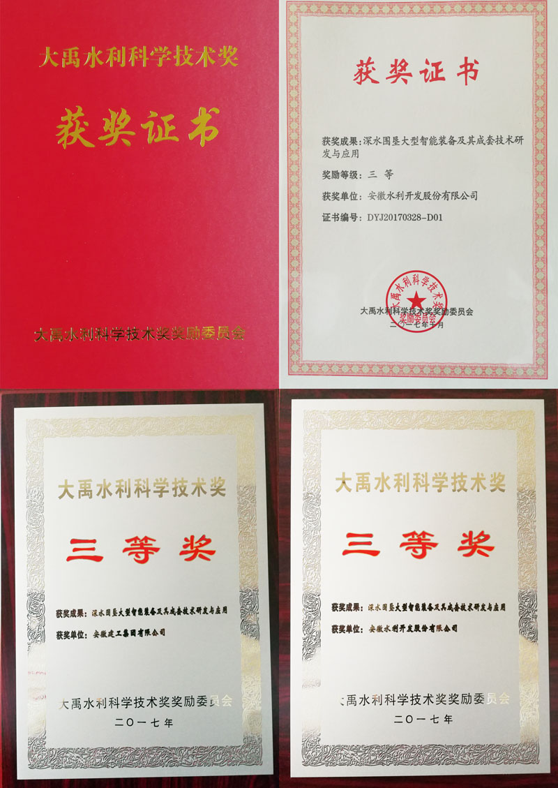 近日,安徽水利与集团联合申报的《深水围垦大型智能装备及其成套技术研发与应用》技术荣获2017年度水利部大禹水利科学技术奖三等奖(技术发明类),该奖项是水利行业的权威科技奖,也是安徽水利及集团的首个大禹水利科技奖;是水利人励精图治、攻坚克难、奋力拼搏和坚持走技术创新之路的结果,意义重大。