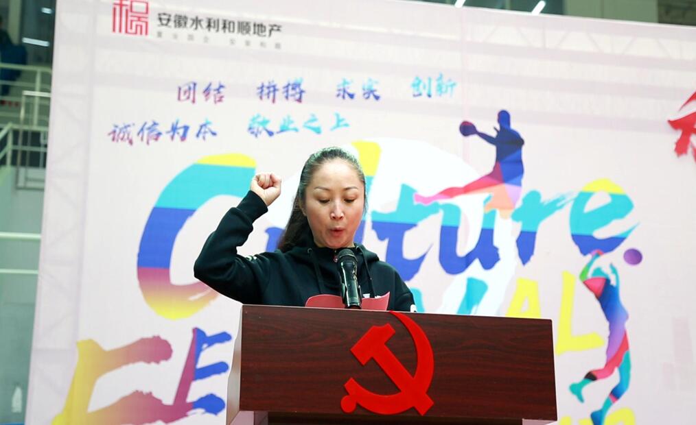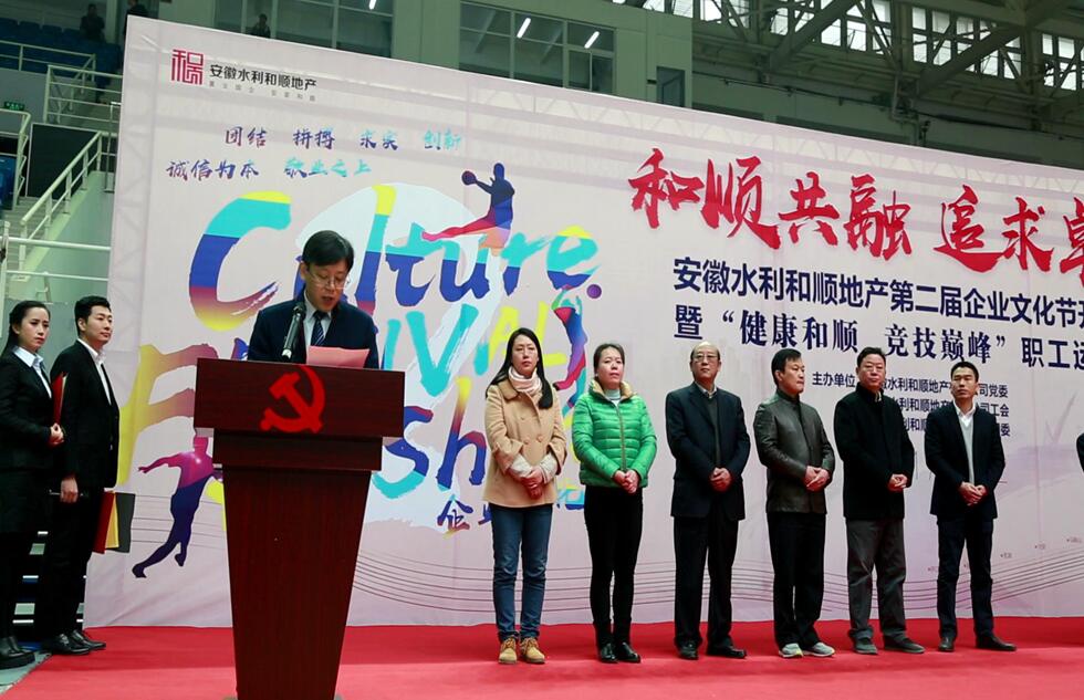 安徽水利工会主席朱乐华为企业文化节致辞。他指出,和顺地产自2015年11月成立以来,在整合现有房地产资源的基础上,锐意进取,改革创新,注重文化建设和人才培养,展示了和顺地产积极向上的勃勃生机。同时,朱总在文化传承、结合生产和文化品牌建设等三方面提出了要求。最后,他向各位来宾和运动员表达了问候,预祝运动会取得圆满成功。