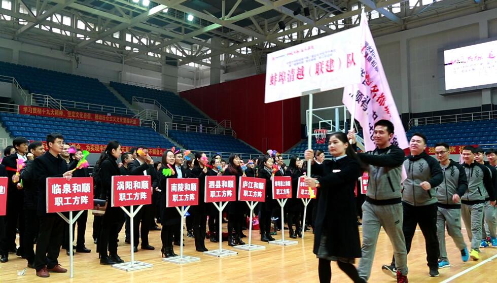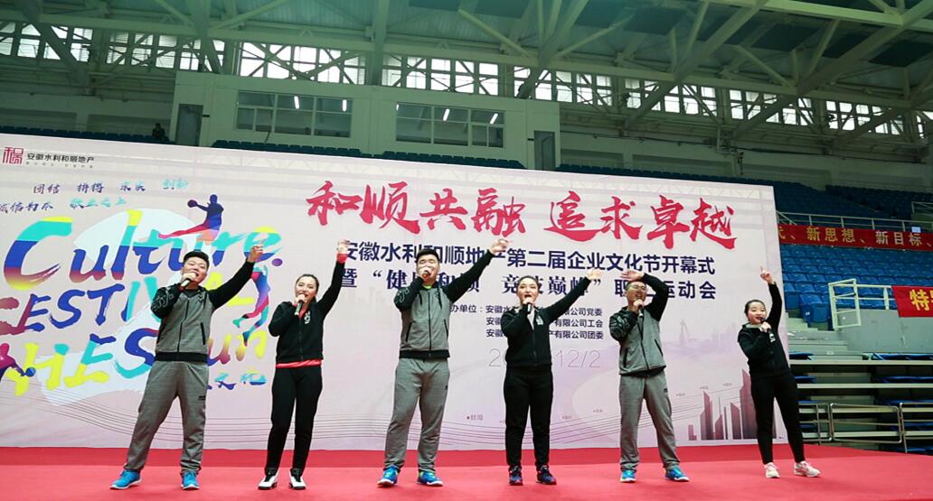 为深入学习贯彻党的十九大精神,落实安徽水利企业文化动员会精神,践行“诚信为本、敬业至上”核心价值观,发扬“敬业、诚信、创新、拼搏”的企业精神,加强和顺地产企业文化建设,丰富职工文化活动,在和顺地产成立两周年之际,安徽水利和顺地产“和顺共融、追求卓越”第二届企业文化节开幕式暨“健康和顺 竞技巅峰”职工运动会于12月2日上午9时在龙湖体育馆隆重开幕。