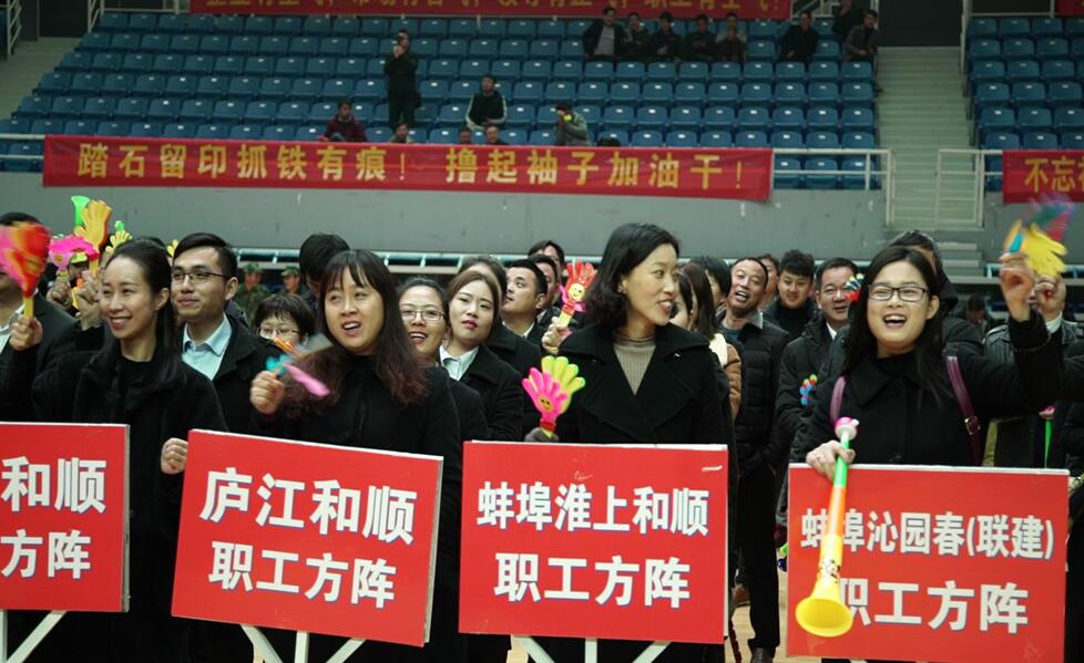 随后,领导们走进职工方阵,与广大职工一起,观看来自和顺地产及联建单位职工献唱的激扬歌曲《We are ready》。来自和顺地产机关、蚌埠沁园春、蚌埠名都城和蚌埠和顺等单位组建的和顺地产啦啦队们,为在场观众舞动青春,为运动员加油,现场气氛欢快活跃。