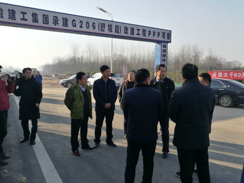12月19日,安徽省公路局党委委员、副局长孙东根一行莅临G206(舒城段)改建工程PPP项目检查指导工作。六安市交通局副局长杨广来,舒城县交通局局长许教育,舒城安建投资有限公司公司董事长、总经理杨军,施工、监理单位相关负责人陪同检查。