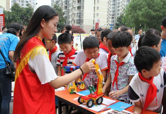 9月21日上午,安徽建工技师学院12名小志愿者再次走进望湖社区,开展了“科普进社区,幸福你我他”志愿者活动。