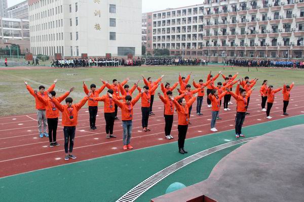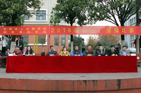 为增强学生体质,开展好学生课间操活动,提高课间操的质量,11月17日中午,安徽建工技师学院在田径场举行2016级学生广播操比赛。