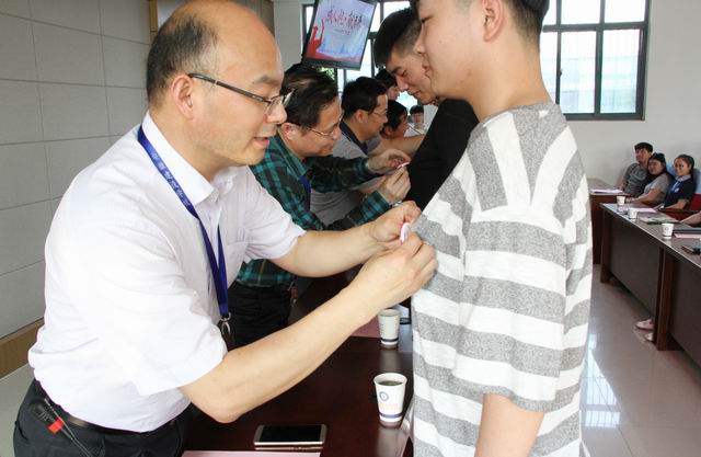 学院领导给参加活动的学生代表佩戴了成人徽章