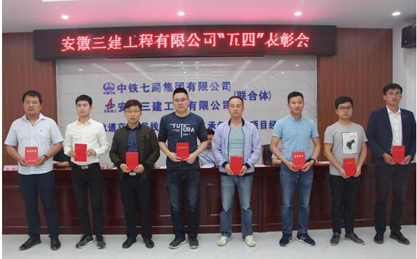 座谈讨论会结束后,公司团委召开了2018年“五四”表彰大会,会上表彰了22名“优秀团员”和9个“五四红旗团支部”,同时,为选树践行“诚信为本,敬业至上”核心价值观系列活动中涌现的先进典型,表彰了26名安徽三建“诚信敬业青年”。