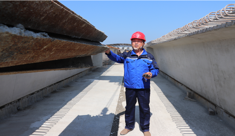 在施工过程中,新问题不断地萌生,例如使用聚苯乙烯泡沫进行空心板芯模施工。为了顺利使用新工艺,解决芯模局部变形等问题,对于空心板作业没有任何经验的汪洋经常向有经验的同事虚心请教,努力学习有关方面的知识,最终使问题迎刃而解。