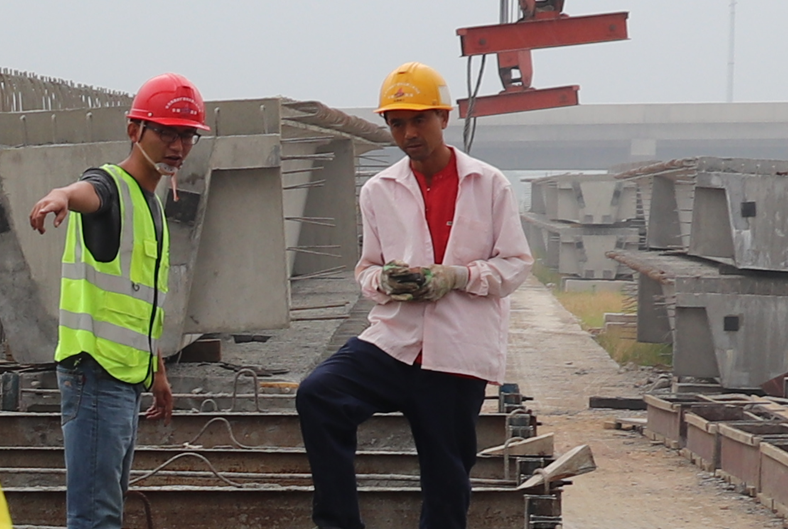 带领施工班组在1号梁板场负责梁板预制的班组负责人王龙,自1996年便进入安徽路港工作,投身于建设事业20多年的他感触颇多:技术不断进步,工艺不断革新,一线工作者只有时刻学习进取,才能跟上时代的步伐。