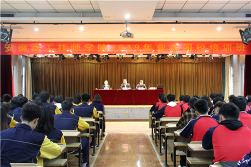 为进一步贯彻落实共青团改革工作,从严治团,选拔并发展一批素质硬、能力强、品行优的共青团员,2019年4月22日17点30分,安徽建工技师学院2019年业余团校培训班开班仪式在院礼堂举行。学院党委书记、院长张卫东、副院长任建设、院团委书记周晓瑛、团委干事许欣璨、五系一部团总支负责老师和入团积极分子近700人参加仪式。