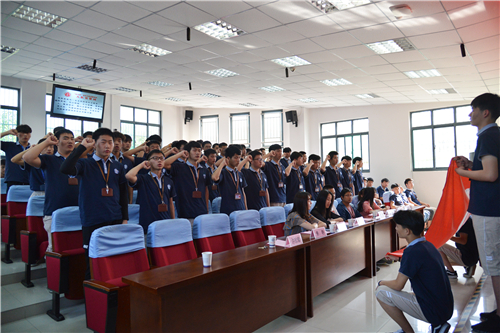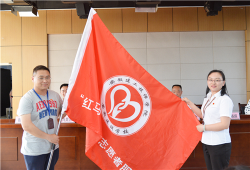 随后,汽车与机电技术系书记助理蔡克老师宣读了《关于同意成立“红马甲”青年志愿者服务队的批复》。德育工作部副主任、团委书记周晓瑛同志为“红马甲”青年志愿者服务队授旗。“红马甲”青年志愿者服务队副队长陈亚楠老师宣读了《“红马甲”青年志愿者服务队章程》。18机电一体化班的李成同学代表青年志愿者发言,并带领全体青年志愿者面对队旗进行了宣誓。