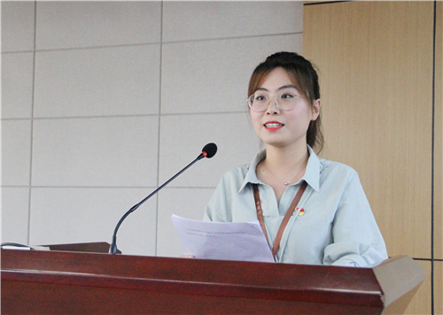 7、汽车与机电技术系书记助理蔡克老师宣读《关于同意成立“红马甲”志愿者服务队的批复》