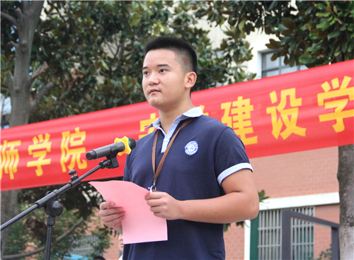 来自工程系杨熙元同学代表全院学生做了国旗下的演讲,他以“学好技能,报效祖国”为题,号召同学们脚踏实地,认真上好开学第一课;一往无前,追逐心中的梦想,成为能文能武的能工巧匠,牢固树立技能成才的信心和技能报国的决心。