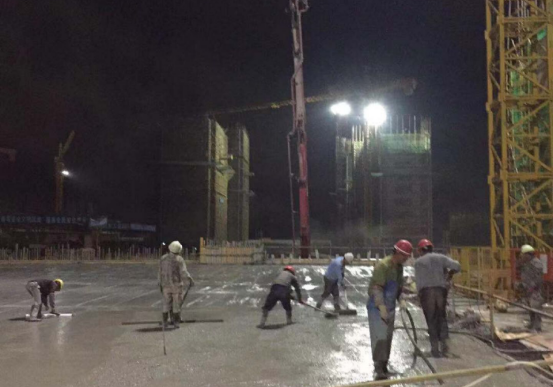 “晨兴理荒秽,带月荷锄归”这首诗词也无法诠释项目部员工奋战在工作岗位的艰辛。凌晨四点,天还黑蒙蒙,大多数人都还在睡梦中,G6#楼的施工员为了加快进度,给班组提供白天有利的抢工时间,早起放线,为下一步工作做好准备。夜间一线工人舍弃了与家人欢聚的时刻,紧张地投入到“大干一百天”的热潮中,尽职尽责,默默付出,处处体现着“舍小家、为大家”的敬业奉献精神。