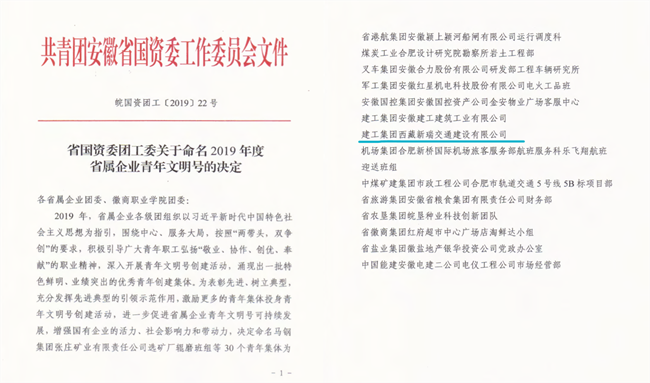 打造示范品牌,引领青年攻坚克难。紧紧围绕公司生产经营中心工作,团结带领青年岗位建功。开展集团公司“青年文明号”工程争创工作,并积极争取将青年文明号创建与党员先锋号、工人先锋号相结合,实现“三号联创”,今年共有利辛PPP项目、灵璧PPP项目、六安312项目等3个单位和项目申报创建集团公司级青年文明号;另外西藏新瑞公司获得了2019年度省属企业“青年文明号”;同时西藏新瑞公司国道219线萨嘎县至康马县段改建工程1合同段项目经理部积极报杯创建省青年安全生产示范岗及青年岗位能手申报。在各项目部一线,组建了多支“青年突击队”,他们在各项重点工作面前勇挑重担,发扬了“特别能吃苦、特别能战斗、特别能奉献、特别能学习、特别能创造”的突击队精神,艰苦奋斗、勤奋学习、锐意进取、建功成才,充分展示当代青年的时代风采,为公司重大重点项目的稳步推进提供了有力保障。