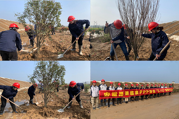 临泉PPP项目团支部组织团员青年开展植树活动。植树现场,在大家精神抖擞、热情高涨,劲往一处使、汗往一处流,积极发挥青年团结、互助、友爱的精神,全心投入植树活动,一起分享种植树木的乐趣。