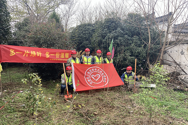 无岳高速05标项目团支部组织青年职工在项目路面分部开展植树活动。植树场地处处是忙碌的身影,虽然脚上沾满泥土,但所有人的脸上都洋溢着灿烂的笑容。在大家的共同努力下,一棵棵充满希望的树苗在大地稳稳扎根。