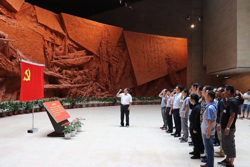 在合肥渡江战役纪念馆内,由集团公司总经理助理、工程管理部主任、机关第三党支部书记童宗胜同志领誓,全体党员面对鲜艳的中国共产党党旗重温了入党誓词,这使全体党员要牢记发挥先锋模范作用,永葆共产党员的先进性;牢记党的宗旨,持续与广大人民群众的密切联系,时刻做到全心全意为人民服务。