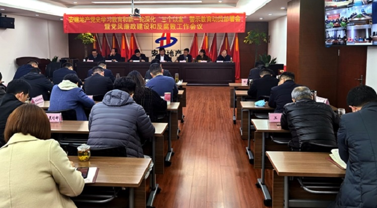 3月15日下午,安建地产在安建大厦21楼第三会议室召开了党史学习教育和新一轮深化“三个以案”警示教育动员部署会暨党风廉政建设和反腐败工作会议。