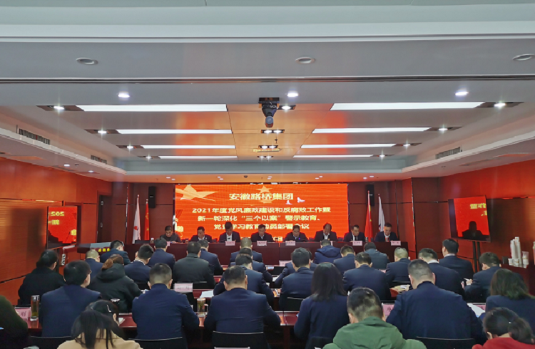 2021年3月20日下午,安徽路桥集团2021年度党风廉政建设和反腐败工作会议暨新一轮深化“三个以案”警示教育部署、党史学习教育动员部署会议在安建国际大厦8楼会议室召开。公司领导班子,机关部门主要负责人,所属各单位党政主要负责人、党群部门负责人等60余人参加会议。会议由公司党委副书记、总经理欧阳志宜同志主持,公司党委书记、董事长盛明宏同志出席会议并讲话,纪委书记王胜利作工作报告。