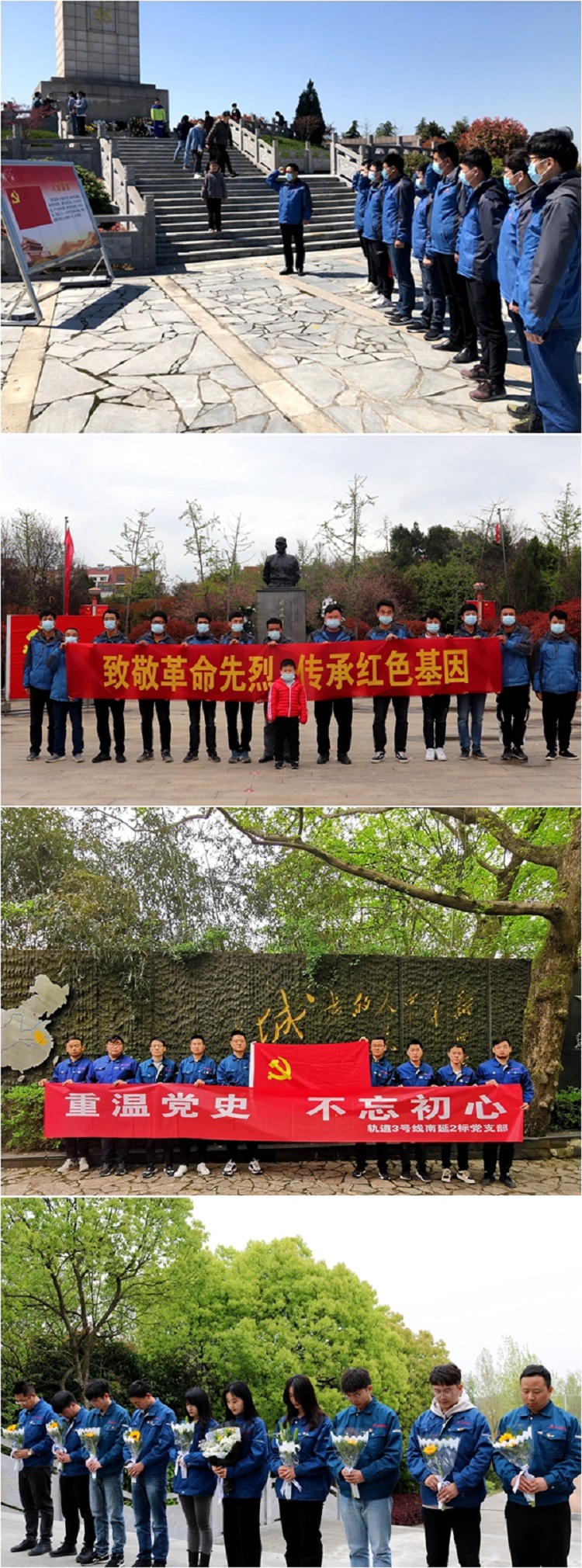 蒙城PPP项目党支部组织党员和职工来到蒙城县革命烈士陵园扫墓祭奠,向革命烈士敬献花篮,表达哀思;淮北片区党支部组织党员、团员青年和职工瞻仰泗县烈士陵园,铭记历史,致敬革命先烈;合肥轨道交通3号线南延2标项目党支部前往新四军江北指挥部开展党史教育,重温入党誓词,牢记初心使命;引江济淮联合党支部追寻红色足迹,在茶壶山烈士陵园纪念碑前,唱响国歌,静思默哀;畅通二环(西南环)项目党支部组织开展“网上祭英烈”活动,广大党员、团员青年和职工登陆网上纪念馆,缅怀革命先烈,表达对英雄的敬意。
