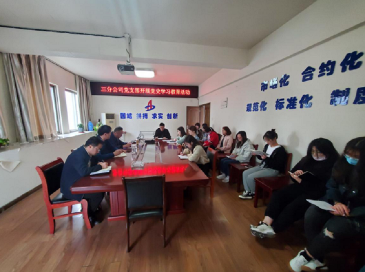 三分公司党支部开展党史学习教育活动,分公司机关全体人员参加,活动由支部书记陈习武主持。首先,陈习武带领大家学习了二建党发【2021】13号文《安徽二建公司党委关于开展党史学习教育的工作方案》,并就分公司党支部的党史学习教育活动做了详细安排部署,要求全体党员干部把思想和行动统一到集团、公司党委的决策部署上来,高标准、高质量完成党史学习教育各项任务,努力做到学史明理、学史增信、学史崇德、学史力行,以优异成绩迎接建党100周年。随后,陈习武带领大家上了一堂生动的党史课。“从上海石库门到嘉兴南湖,一艘小小红船承载着人民的重托、民族的希望,越过急流险滩,穿过惊涛骇浪,成为领航中国行稳致远的巍巍巨轮。”。通过视频和讲解相结合,为大家叙述了从中国共产党成立到建立新中国,28年间,党召开了一次次重要会议。这些会议作出的决策,指引了中国革命的方向,推动了历史进程,具有里程碑意义。大家纷纷表示,将从党史中汲取智慧和力量,坚定信仰信念,进一步提高党性修养,不忘初心,以实际行动发挥好党员干部的模范带头作用,积极投入到干事创业中去,为分公司的发展添砖加瓦。