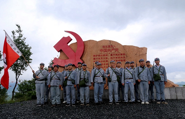 在宁国市港口红色教育基地,党员和职工代表通过穿一次红军服、升一次五星红旗、唱一首红歌、体验一次行军、重温一次宣誓的“五个一”活动,在具体的实践体验中感悟红军艰苦奋斗的精神、坚定攻坚克难的理想信念,教育引导广大党员职工在后续的项目建设中鼓足干劲,推动项目建设高效推进。