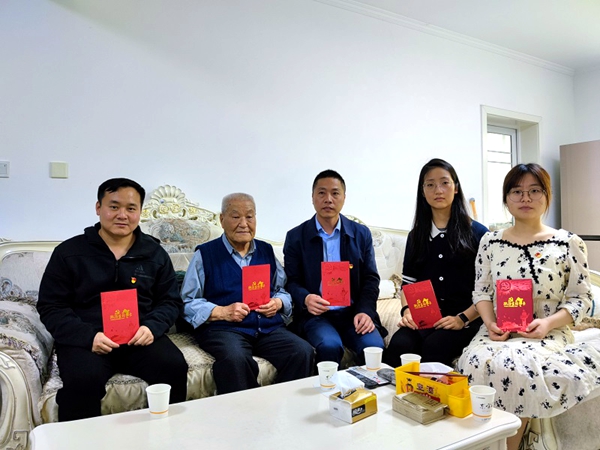 支部一行赴固镇县抗美援朝老兵李保华家中探访慰问。李保华不仅是抗美援朝的老兵,同时也是一名有着60年党龄的老党员,他虽已年逾90,但气色尚好,思路清晰,至今依然记得当年“争上前线、枪林弹雨”的峥嵘岁月。他满怀激情地和大家分享了自己及战友们在严寒、缺衣、少食的恶劣条件下,不怕牺牲,英勇抗击敌人的光辉故事。李老用自己的亲身经历为全体人员上了一堂生动、具有教育意义的党课,让大家铭记先烈们的英雄事迹,继承艰苦奋斗的革命精神。李老还同全体党员一起过了一次政治生日,让党旗永远在心中飘扬。
