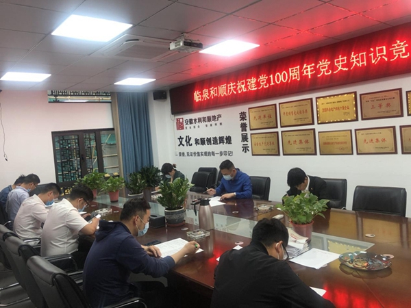 上好“创新党建课”,和顺地产所属各单位一方面利用网络平台与互联网资源,积极开展视频党课,组织全体党员集中观看党史纪录片、红色主题影片;另一方面,积极组织户外红色教育实践,赴台儿庄、藕塘革命纪念馆、渡江战役总指挥前委旧址等地聆听革命故事,感受革命情怀;除此之外,多家党支部“以考促学”,开展党史知识测试、知识竞赛等活动,不断巩固学习效果。