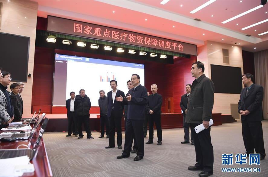 新华社北京2月1日电 2月1日,中共中央政治局常委、国务院总理、中央应对新型冠状病毒感染肺炎疫情工作领导小组组长李克强赴疫情防控国家重点医疗物资保障调度平台考察,强调要在以习近平同志为核心的党中央坚强领导下,全力保障重点医疗防控物资生产供应,优化调度,优先保障重点地区需要,同时保障好生活必需品供应,为打赢疫情防控阻击战提供必要条件。