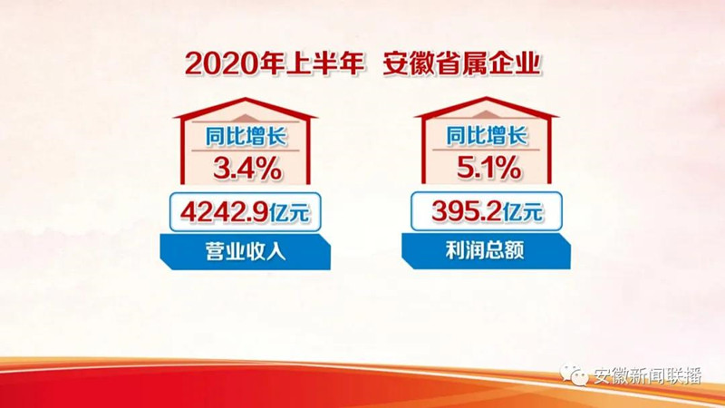 上半年,安徽省属企业实现营业收入4242.9亿元、利润总额达395.2亿元,同比分别增长3.4%和5.1%,继续稳居全国第一方阵和中部领先地位。19日,安徽新闻联播对此进行了如下报道: