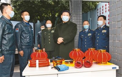 中华民族传统节日春节即将来临之际,中共中央总书记、国家主席、中央军委主席习近平2月4日视察空军航空兵某师,看望慰问部队官兵,代表党中央和中央军委,向全体人民解放军指战员、武警部队官兵、军队文职人员、民兵预备役人员致以诚挚问候和新春祝福。这是习近平到场站医院了解部队疫情防控和支援地方防疫情况。