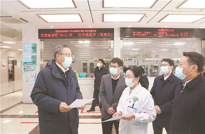2月9日上午,省委书记李锦斌深入合肥市包河区淝河镇社区卫生服务中心,看望慰问奋战在疫情防控工作第一线的社区医务工作者。