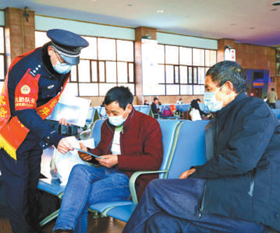 春节假期,太原铁路公安处民警为旅客提供周到服务,让旅客有更好的出行体验。图为民警在发放安全出行注意事项等宣传品。