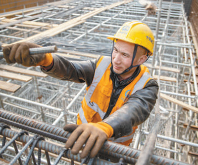 今年春节假期,中铁建工集团1000余名建设者坚守北京丰台站工作一线,冲刺丰台站主体结构封顶。图为工人正在施工。