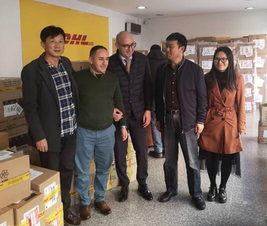 春节期间没有回国探亲,选择坚守海外一线的驻阿经理部党总支书记韩立兵在接到国内通知后,立刻组织物资采购和翻译人员成立临时采购小组,带队挨家走访药店,挨个打电话联系医疗设备批发商,寻找符合国内防疫需求的物资。几经奔波,终于寻得一家药店承诺可订购10万个医用外科口罩,大家精神振奋,心里悬着的石头终于落了地。然而,次日清晨采购小组按照约定来到药店取货时,却被告知只到货5000个口罩。同时,另一家承诺可出售防护服的医疗器材供货商也只拿出了不符合国内防疫要求的半身式防护服和3000个医用外科口罩。失望之余,大家并不气馁,继续拿起手机拨打电话,努力搜索货源信息。功夫不负有心人,很快,韩立兵得到信息,一家医疗器材进口商正在出售3M防护服。此时,忙碌了一上午采购小组顾不上吃饭,立即赶到这家进口公司,惊喜地发现,除3M防护服外,这家还有存量不小的与N95功效相当的欧标FFP2口罩。由于防护服贮存在较远的仓库,为争分多秒,尽早将物资送往国内,采购小组决定先购买2400个FFP2现货口罩,连同当天购得的医用外科口罩一起,送往DHL航空货运公司办理加急发运手续。