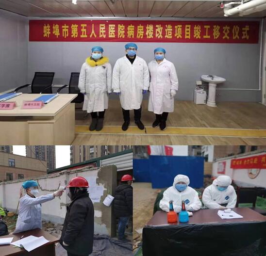 疫情就是命令,防控就是责任。2月2日至12日,李广松副院长带领青年突击队成员宋贝妮、钱梅两位同志,坚守在疫情防控一线为建设蚌埠“小汤山”(蚌埠五院应急工程)的施工人员及管理人员测量体温、提供防护物资,并积极进行疫情防护与宣传工作。李广松说:“作为一名共产党员,疫情防控工作关系到每一个人的身心健康和生命安全,我们责无旁贷,坚决不能退缩。”