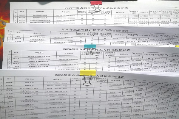 项目部充分意识到疫情防控工作的重要性与紧迫性,提前联系班组人员,要求返工人员提供社区或村镇健康证明、近一个月出行记录、健康申报表、承诺书、疫情防控卡以及安康码等相关资料,一人一档进行备案。为解决疫情期间职工就餐难题,降低传染风险,项目食堂采取分餐制,食堂设置洗手消毒区,配备一次性餐盒专用收储垃圾桶。