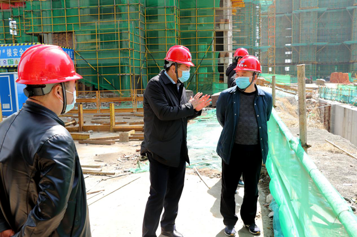 2月28日,安建地产·尚河源筑项目成为固镇县第一个复工复产的项目。复工后,固镇公司围绕“上班要安心、宣传要上心、复工要用心”,安全有序推进落实项目复工和防疫工作。3月11日上午,安建地产党委委员、纪委书记王绪徽,纪委副书记、监察室主任范宏斌一行赴固镇公司调研疫情防控及复工复产工作。督查组一行对固镇公司的疫情防控及复工复产工作给予了肯定,并要求要严格落实各级防疫部署,按照疫情防控方案抓牢各个环节,为全面复工复产创造安全的生产环境,全力保障今年交付任务圆满完成。