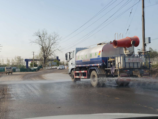 气温逐渐升高,项目部每天都安排洒水车多频次清洒场区内外路面,进行喷洒、降温降尘工作,严格按要求保持工地现场卫生整洁。