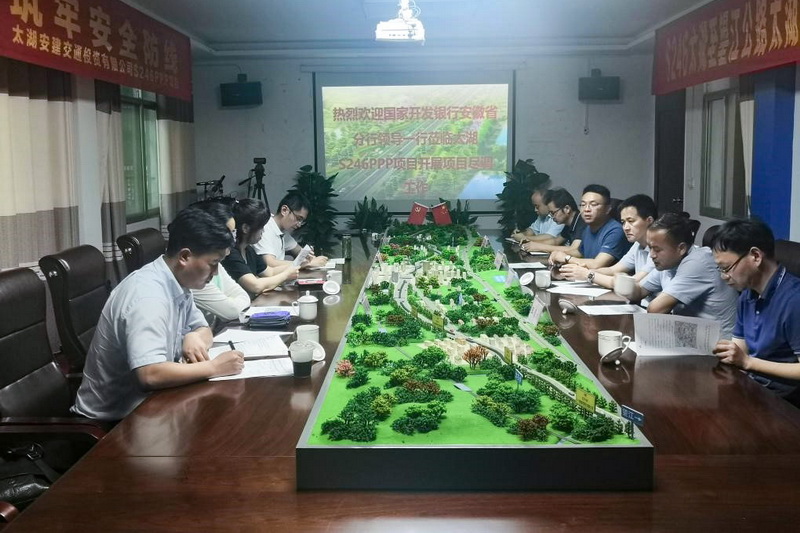 6月10日下午,国家开发银行安徽省分行客户六处处长申晓瑜一行赴太湖S246PPP项目现场就该项目融资工作进行洽谈磋商,投资公司副总经理黄国平、财务总监王继成及项目公司相关人员参与洽谈。