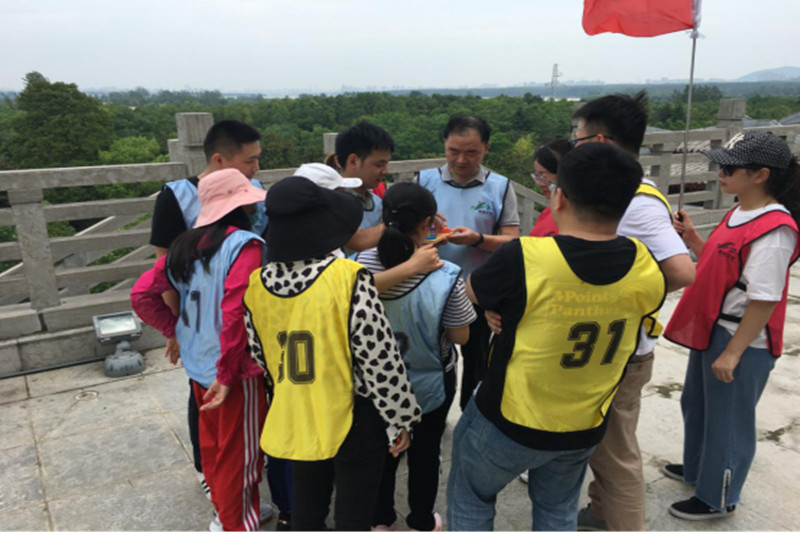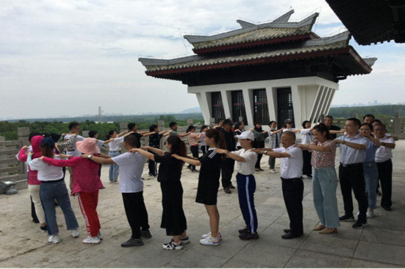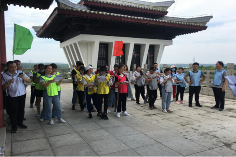 学习活动结束后,大家稍作休息,来到“金汤虎台”,站在“城楼”之上,俯瞰远方,想象着当年的满宠将军战鼓阵阵、兵马如林的场景,大家心中不禁升起一股浓郁豪情。紧接着,在拓展教练的引领下,全体人员进行了简短而富有趣味的热身活动和小游戏,身心得到了完全的舒展。随后大家被分成两队,通过发挥团队合力分别制作了队旗、队徽,精彩展示了口号和队形,协作完成了汉诺塔团队任务,在活动中增进了情感交流,提升了团队凝聚力战斗力。最后,机关党支部还精心组织开展了党建知识快问快答比赛,这是一场智慧和脑力的比拼,更是一次加强政治学习、巩固党建知识的大好机会,6个小组奋勇争先,现场气氛十分热烈,通过6轮紧张激烈的竞答环节最终决胜出团体第一、二、三名,充分展现了安徽建科机关党支部党员深厚的政治理论功底和斗志昂扬的精神状态。