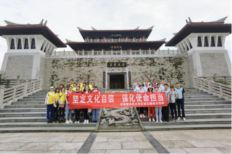 为大力弘扬中华传统文化,增强文化自信,进一步提高支部党员的综合素质和团队战斗力,7月22日,安徽建科机关党支部组织党员、发展对象、入党积极分子共计37人赴合肥市爱国主义教育基地三国遗址公园开展“坚定文化自信、强化使命担当”主题党日暨团队建设活动。安徽建科领导项炳泉、安东兵、李跃进、程钢及民主党派代表侯骏应邀参加活动。