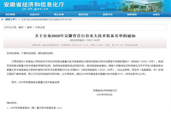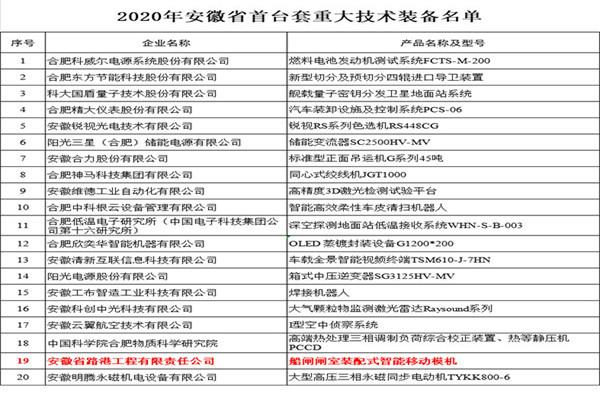 9月23日,省经信厅正式公布2020年安徽省首台套重大技术装备认定名单,安徽省路港工程有限责任公司申报的“船闸闸室装配式智能移动模机”(以下简称“船闸移动模机”)产品成功入选。