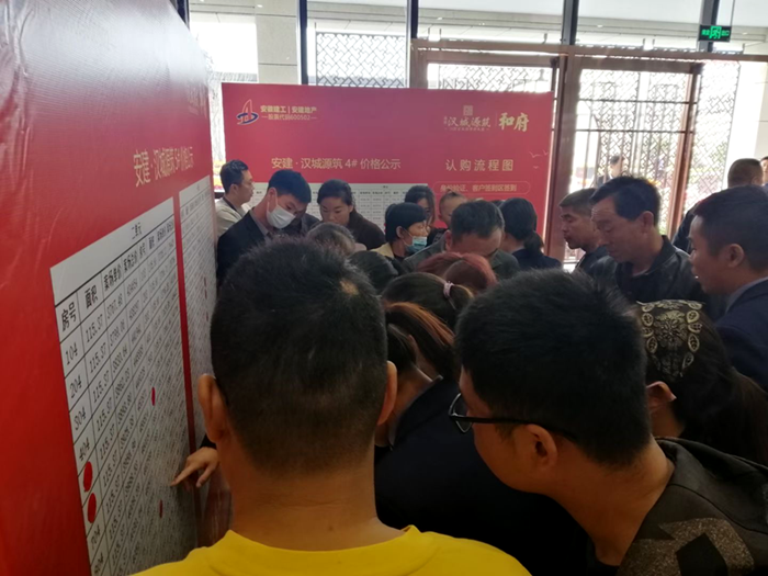 开盘当日,为争取早点选定心仪的好房源,安建·汉城源筑的准业主们一早就来到了开盘现场。从络绎不绝的客户和现场热烈的气氛中,大家都感受到购房者对安建地产品牌的信赖及汉城源筑项目的认可。