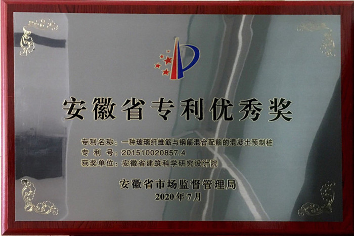 近日,第七届安徽省专利奖评奖工作落下帷幕,安徽建科发明专利“一种玻璃纤维筋与钢筋混合配筋的混凝土预制桩(ZL201510020857.4)”荣获“安徽省专利优秀奖”。
