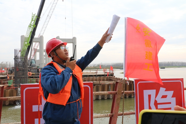 固蚌、芜黄高速作为省委省政府规划的“县县通高速”,将在2021年建成通车,这对于今年3月份项目才正式开工的全体建设者来说,无疑是个巨大挑战。在淮河岸边、浍河之上,青年党员陆志康正在组织打桩机施工。“浍河特大桥长2.6km,是安徽省首座组合梁系杆拱桥,引桥采用钢板组合梁,建成后将成为浍河上的新地标,”他自信地说。不论是疫情防控后的复工复产,还是抗洪期间,他都始终冲锋在前,白天在一线蹲守,晚上研究解决问题的办法。圆月初升,各个工位上的聚光灯,点燃寂静夜空,将夜晚照得如同白昼明亮,陆志康乘着夜色仍在混凝土浇筑工点,忘记了时间,只为了一个目标,就是要把项目又好又快建成。